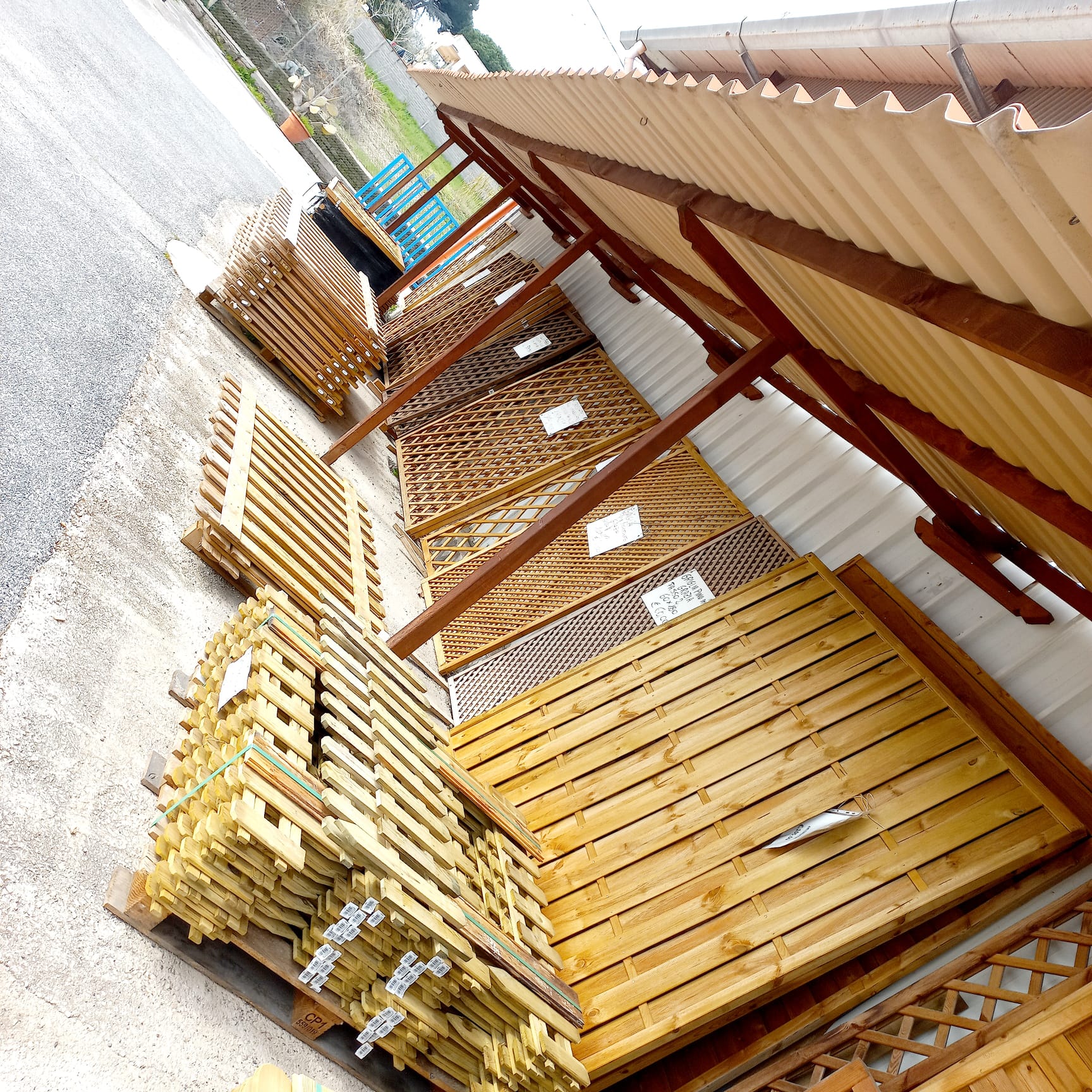 La ditta realizza tettoie, pergole, gazebi, casette prefabbricate, elementi per recinzioni in legno, impiallacciature, travi lamellari in abete e castagno, grigliati da esterno in legno. Forniture e posa in opera di pannelli coibentati sia tipo greca che finta tegola.